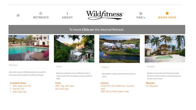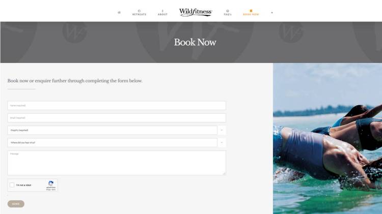 Any “Book Now” button links to the contact form to inquire about a booking.